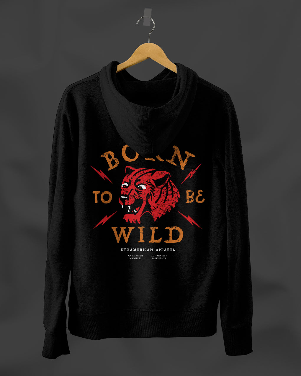 The Born To Be Wild is made from 80% cotton and 20% polyester. Featuring a bold rear graphic print, pouch pocket, and crossover hood, with a bold rear graphic inspired by traditional tattoo artistry & finished with contemporary details. This tee is inspired by the wild souls within us all.