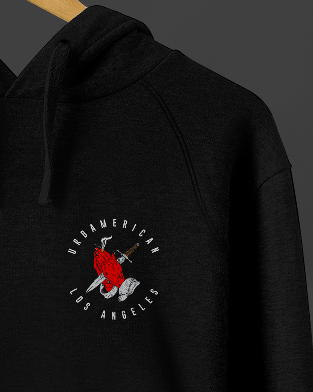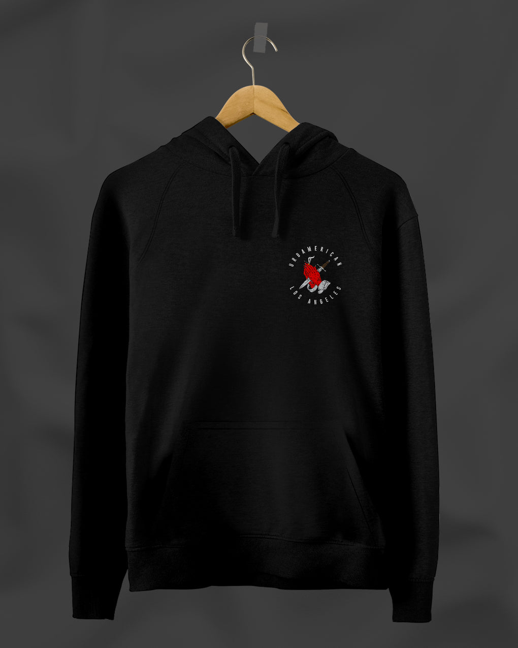 ∙ 80% cotton and 20% polyester ∙ Mid-weight 8.5 oz. ∙ Pouch pocket ∙ Crossover hood ∙ In-house graphics ∙ Made in L.A.
